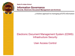 The Santa Fe Indian School (SFIS) endeavored on the deployment of an efficiency application in the form of an Electronic Document Management System (EDMS). The idea first floated around SFIS in early 2010 and the system went into production in early 2011. The concept of a "paperless" office was enticing to SFIS but the reality of the scope of a project of this magnitude was not realized until deep in the first year of production. SFIS did not have a comprehensive records and information management policy which is the very foundation of any organization's attempt to manage "information."